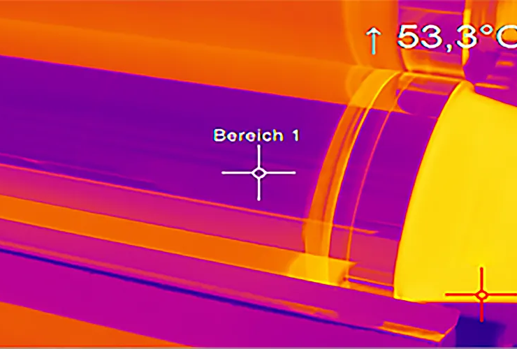 Infrared sensors are necessary to ensure the plastic reaches its glass transition temperature. However, temperature monitoring can be challenging because the plastics are often less than 400 µm thick, and the process involves infrared heaters. Infrared heaters transmit heat or energy contactlessly through directed infrared radiation. To use infrared heating processes as efficiently as possible, the emissivity of the plastic material must be considered, determining whether the IR emitter should operate in the short, medium, or long-wave infrared range. The emissivity depends on the material, surface quality, wavelength, angle, and, in some cases, the applied configuration.