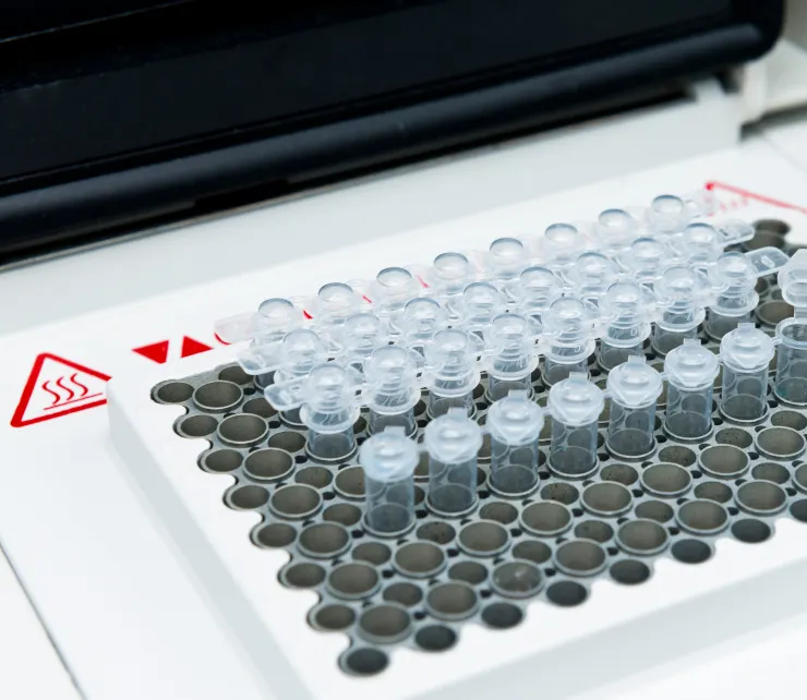 Amplifikace vzorků DNA se provádí pomocí polymerázové řetězové reakce (PCR), což je technika nezbytná v molekulárně-biologickém výzkumu. Proces zahrnuje třífázový cyklus denaturace, nasedání a elongace.