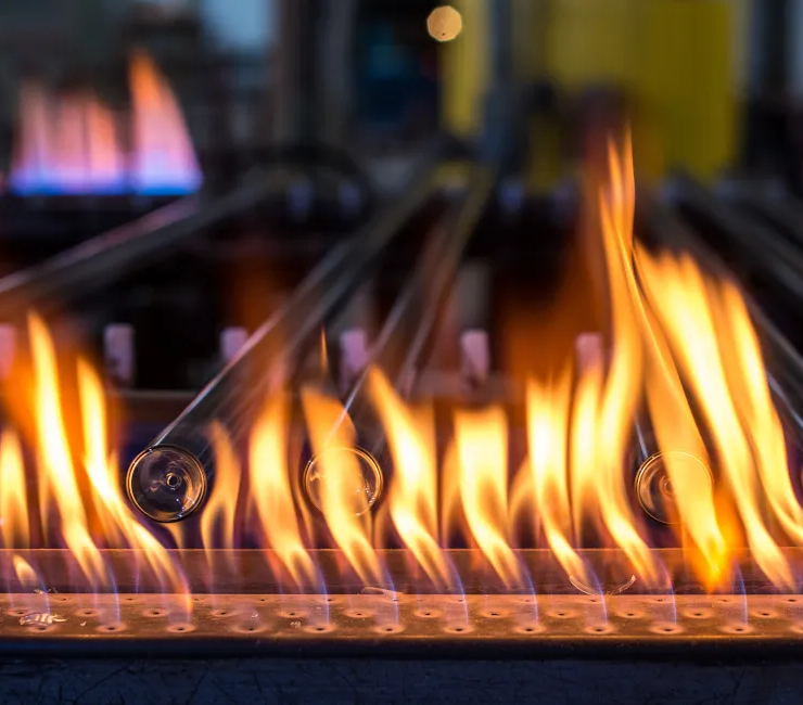 Výroba skleněných stříkaček zahrnuje komplexní regulaci teploty během procesu tváření skla. Nejprve se skleněná trubice zahřeje na teploty dosahující až 1100 °C, než projde různými fázemi výrobní linky. Během těchto fází je sklo podrobeno řadě procesů, včetně přetváření aplikací přesné síly, jako je vytvoření zúžené nebo zesílené oblasti, což vyžaduje přesnou regulaci teploty. Pohyb skleněných trubic je nepřetržitý, protože jakékoli zpoždění nebo nesprávná teplota může vést k předčasné deformaci a vzniku vadných stříkaček.