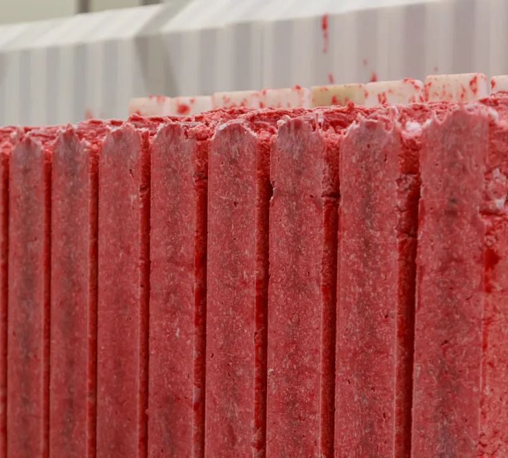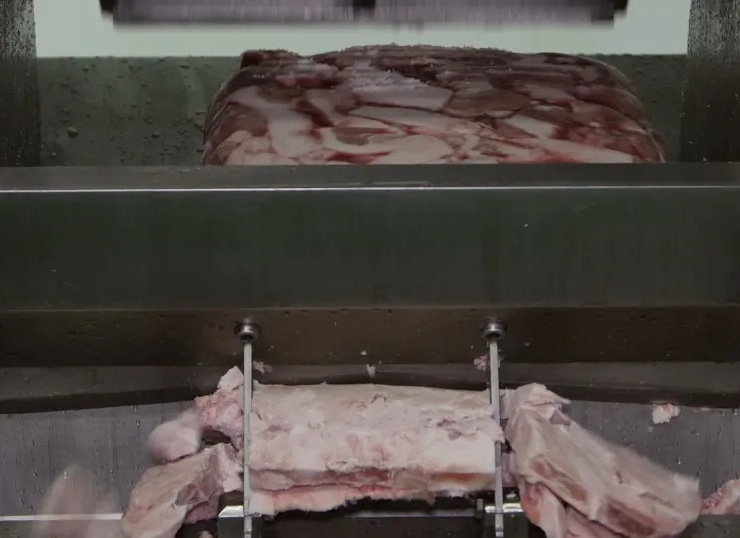 Kritickou fází tohoto procesu je drcení zmrazených masných bloků, kdy se maso vkládá do drtiče nebo podobného stroje. Pokud je maso příliš studené, výrazně pod -18 °C, stává se extrémně tvrdým a křehkým, což vede k problémům s krájením, zvýšenému opotřebení řezných nástrojů a vyšším nákladům na údržbu. Kromě toho může být ohrožena kvalita drceného produktu, protože maso se může místo čistého krájení zlomit nebo roztříštit. Na druhou stranu, pokud je maso příliš teplé, těsně pod 0 °C, ztrácí svou pevnost a během drcení se může rozmazat nebo slepit, což způsobuje ucpávání a nerovnoměrné krájení, což negativně ovlivňuje kvalitu konečného produktu.