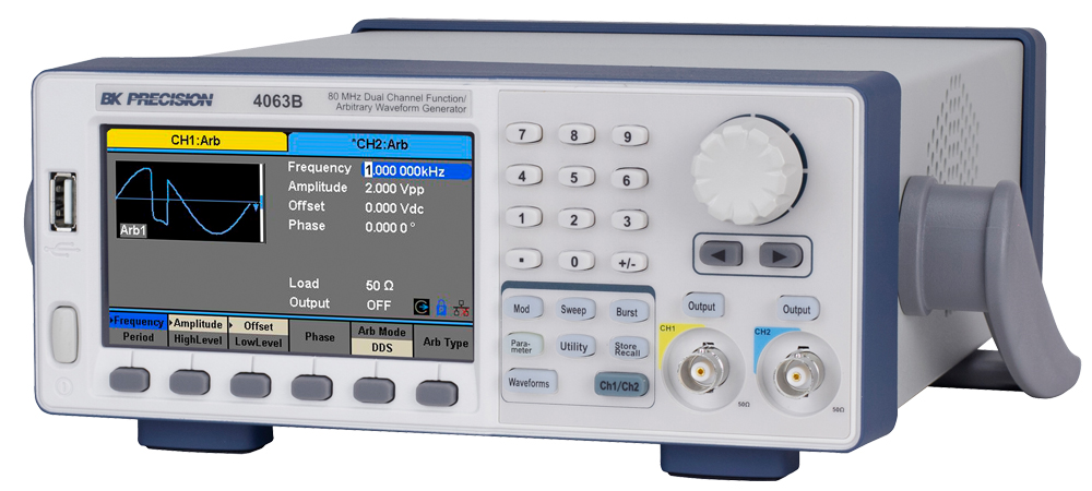Generátor BK4063B ponúka 2 nezávislé výstupy s tým, že jednoduchým prepnutím tlačidla je možné z týchto výstupov generovať rovnaký signál s nastaviteľnou fázou medzi jednotlivými kanálmi.