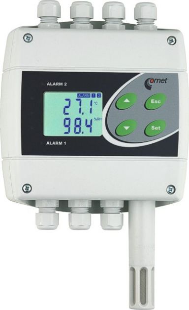 Snímače a regulátory teploty, vlhkosti a tlaku vzduchu na dvojstavové riadenie a monitorovanie priestorov firmy Comet. Sú vybavené dvoma výstupmi na kontakty relé.